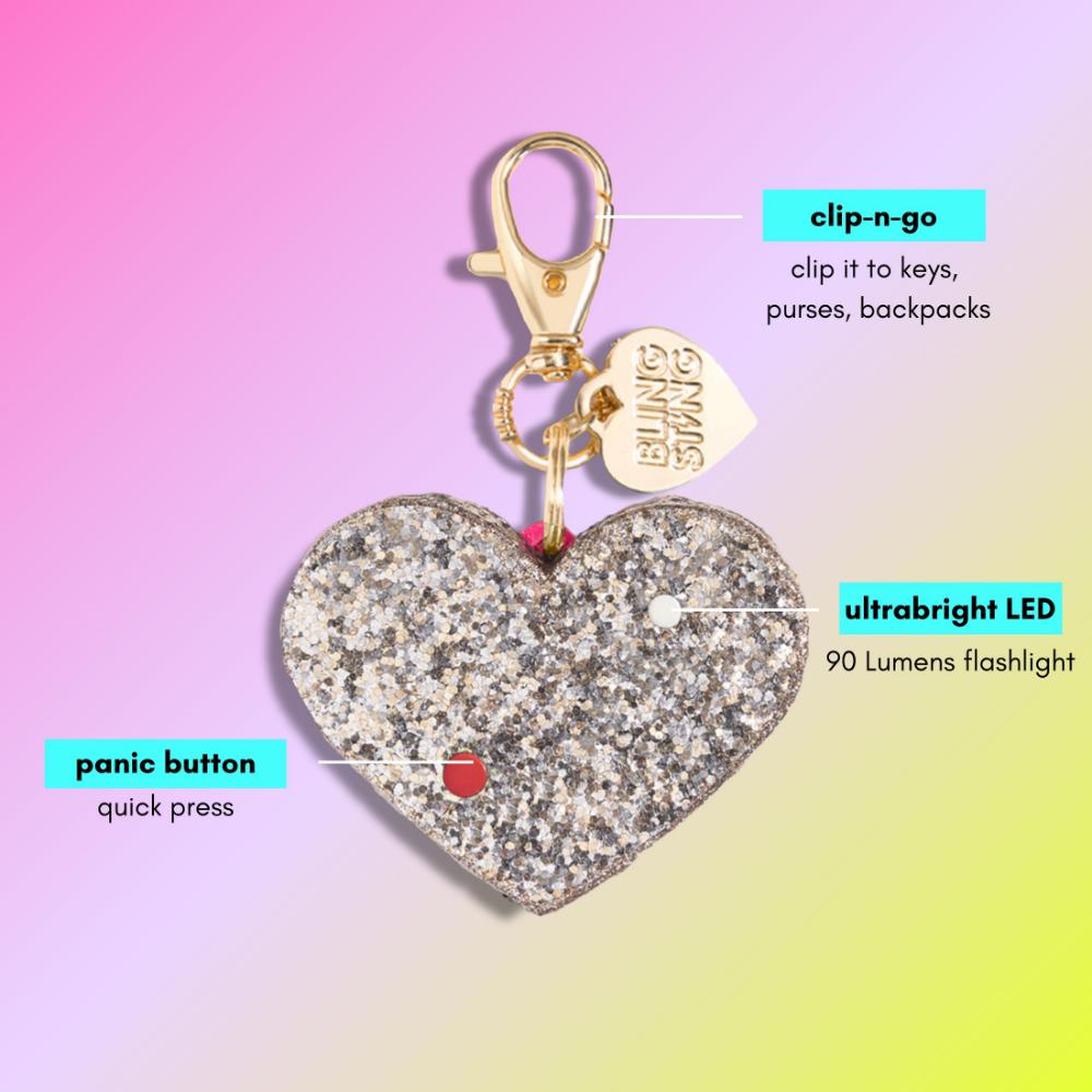 - BLINGSTING safety alarm – rose gold glitter heart